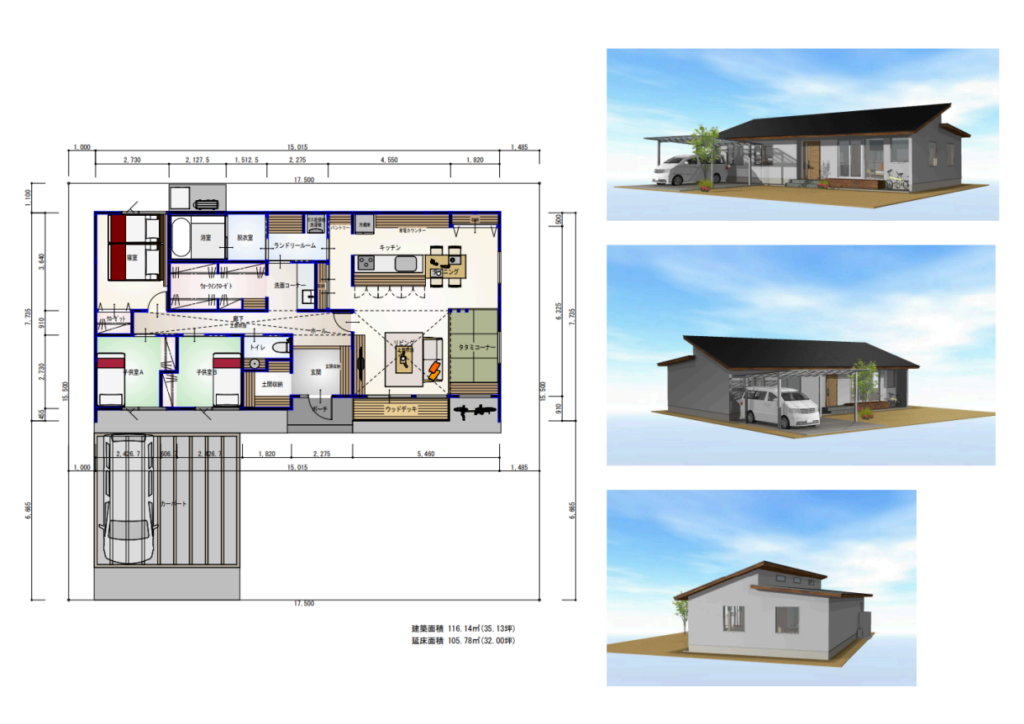 家族四人で快適に生活できる平屋の建築を考える時に、最も重要なのは面積の数字ではありません。動線の質です。