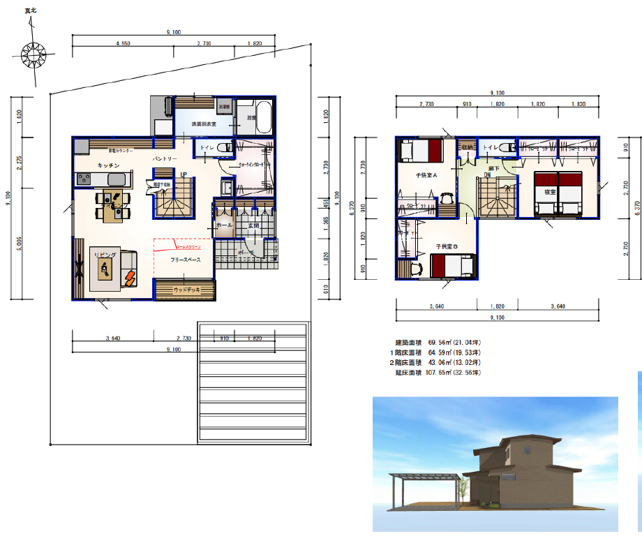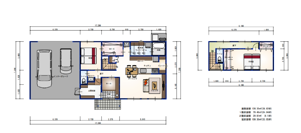 プラン2は、延床面積約33坪の中に共働き世帯の理想を凝縮した、家事効率を最優先に考える方に最適な間取りです 。